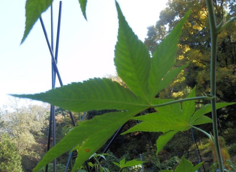 葉は掌状に7裂することが多い。葉裏は白緑色。