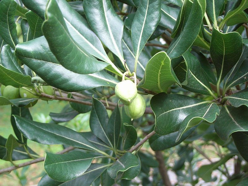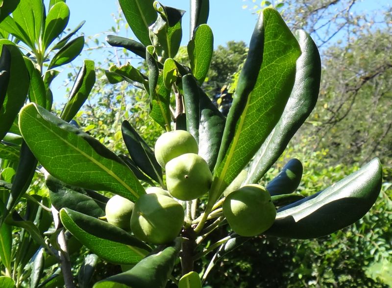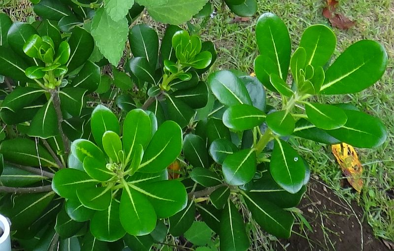 葉は全縁で光沢があり、葉先は丸い。
