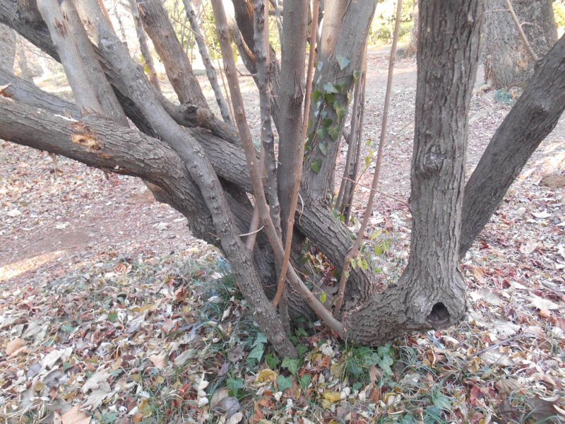 幹は灰褐色〜黒褐色で、縦筋があり、株立ちすることが多い。