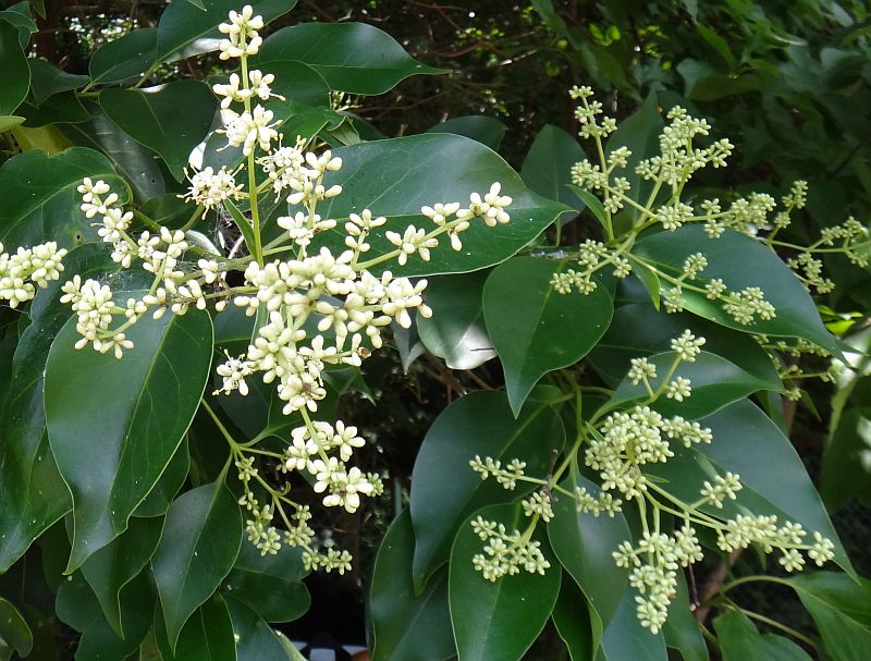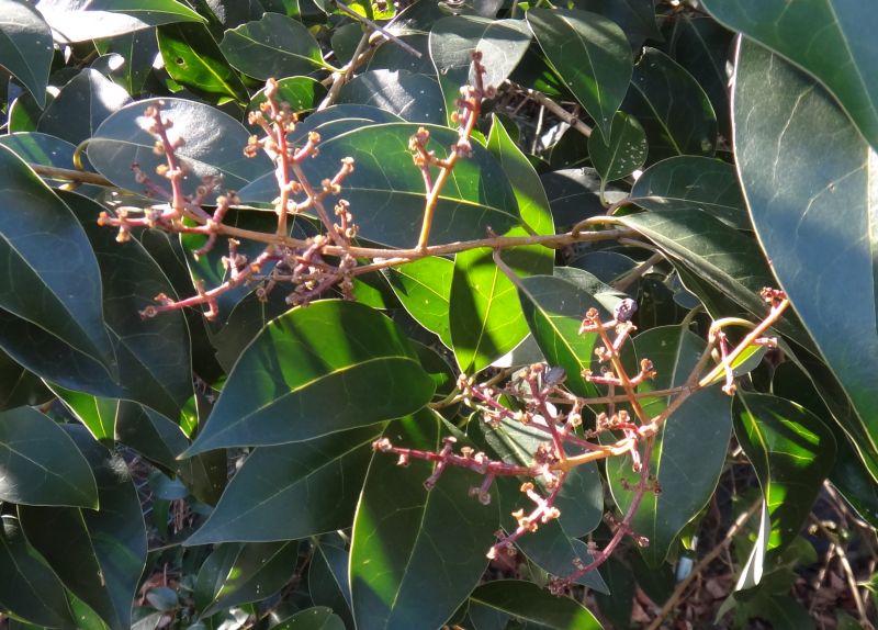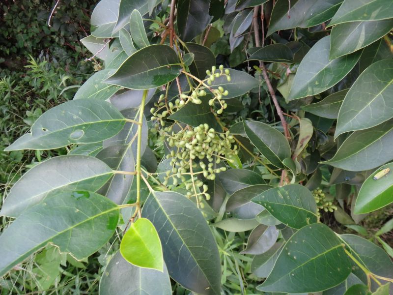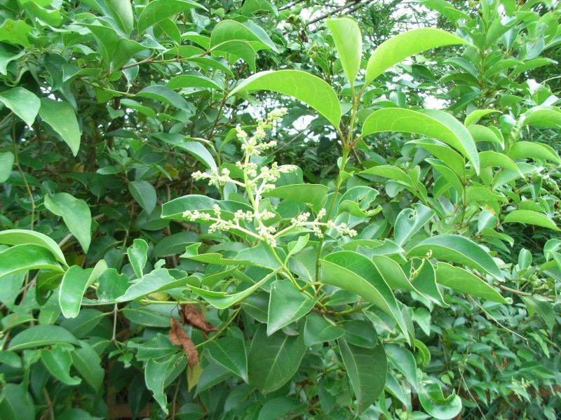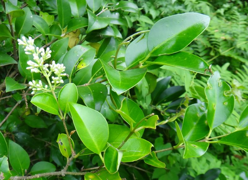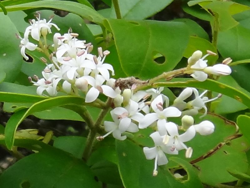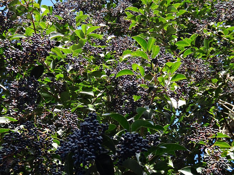 トウネズミモチ:葉脈が透けて見える。葉や花序、樹高が大きい。
