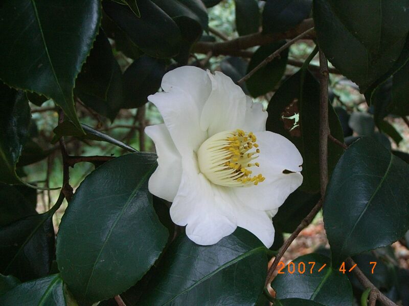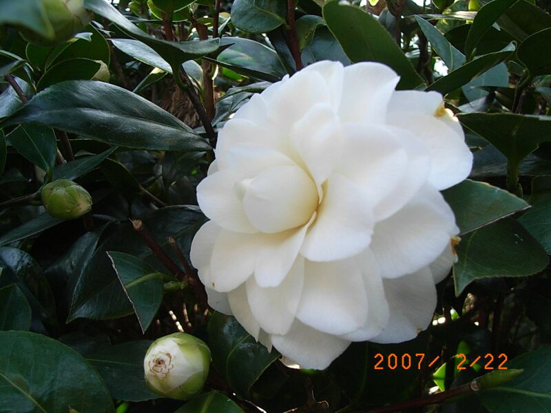 11月〜2月に直径10〜15センチの大きな白い花を咲かせる。