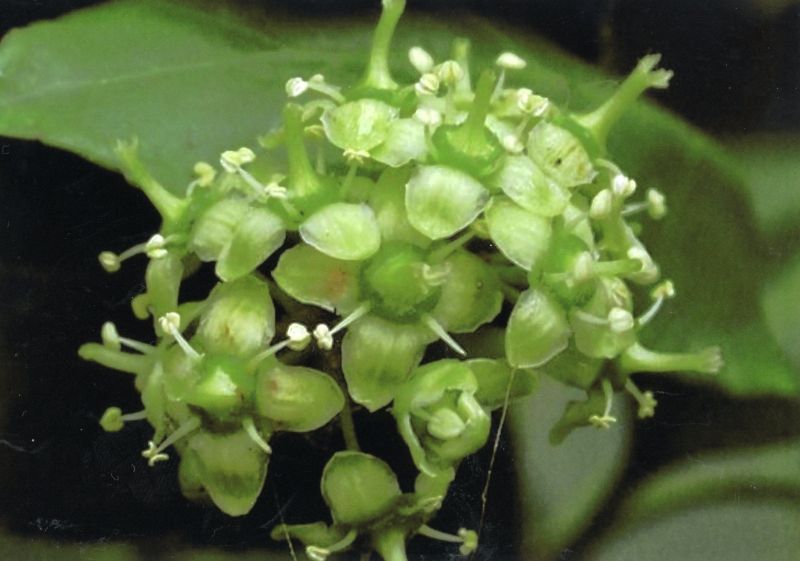 黄緑色の小さな花が集散状に咲く。Photo by H. O.