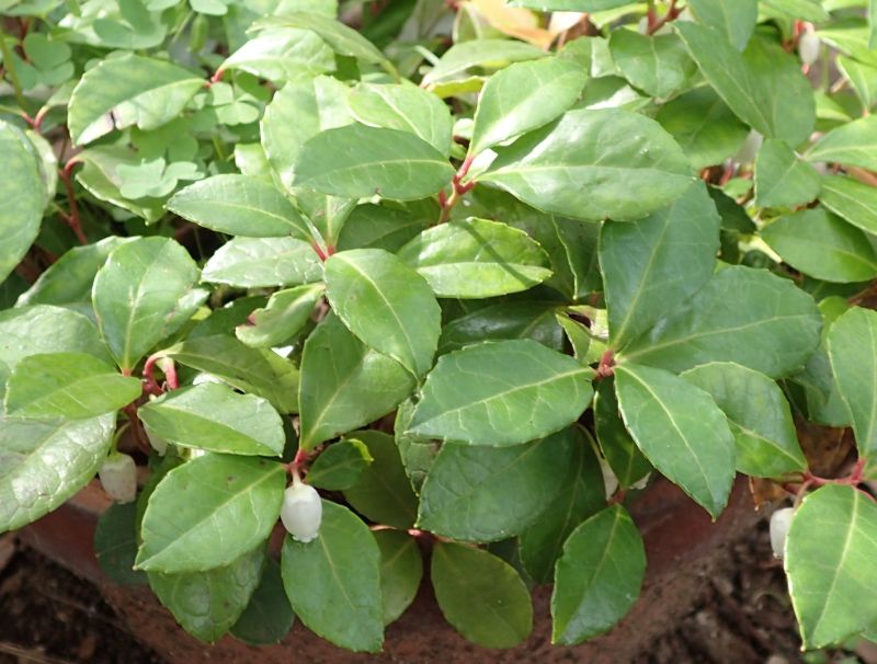 茎は低くて群生し、葉は先のとがった楕円形で、白くて小さい壺状の花が総状に咲く