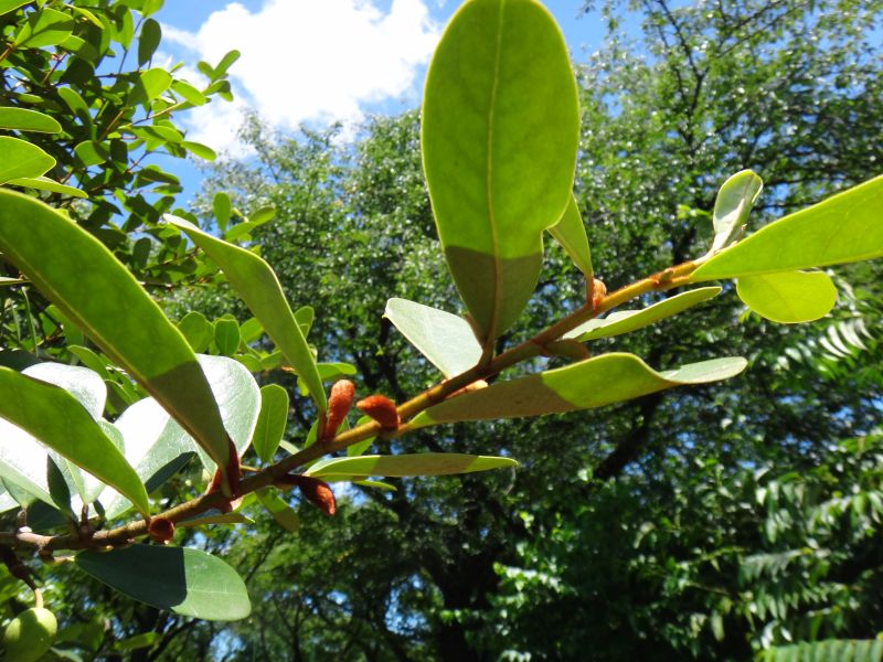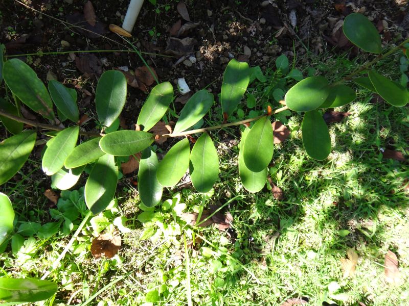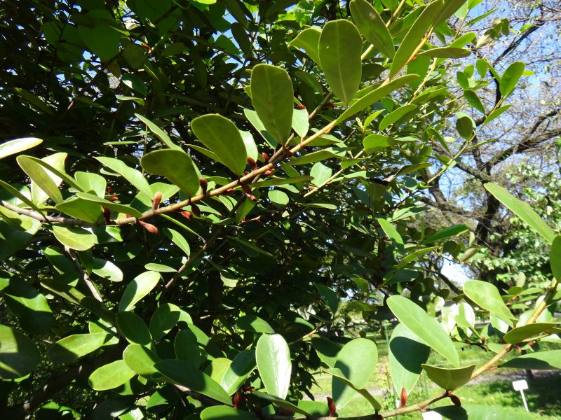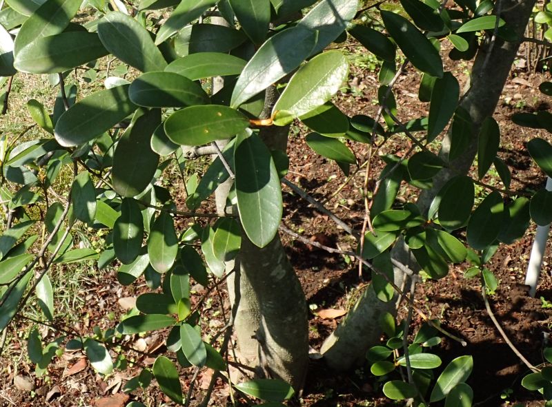 葉は鈍頭の楕円形で、全縁、革質であり、互生する。