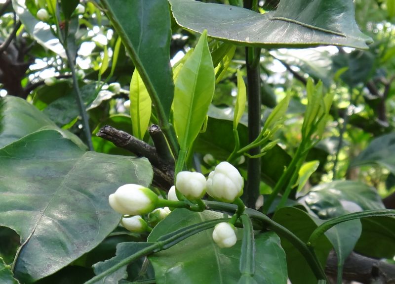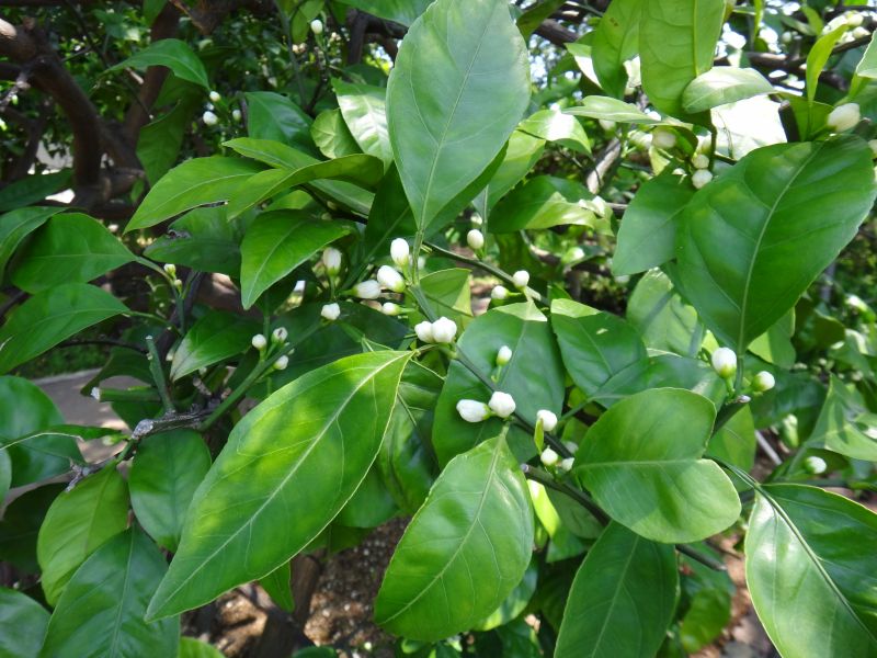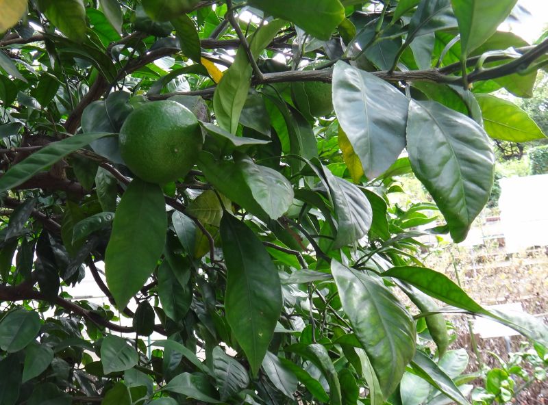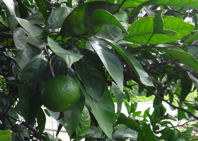晩秋に直径5〜8センチの少し平たいミカン果が橙黄色に熟す。