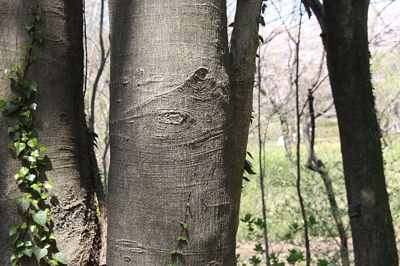 樹皮は灰黒色で滑らかであり、丸い皮目が散在する。