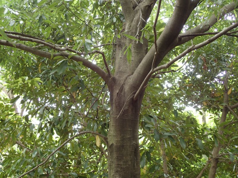 幹は直立し、樹皮は灰黒色で滑らかであり、