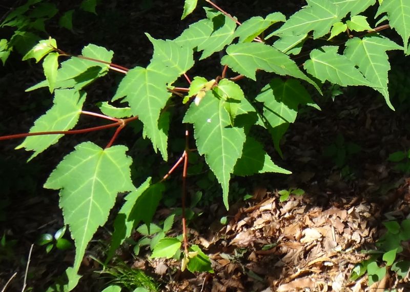 葉が3浅裂している。若枝は赤い。(2016/5/5)