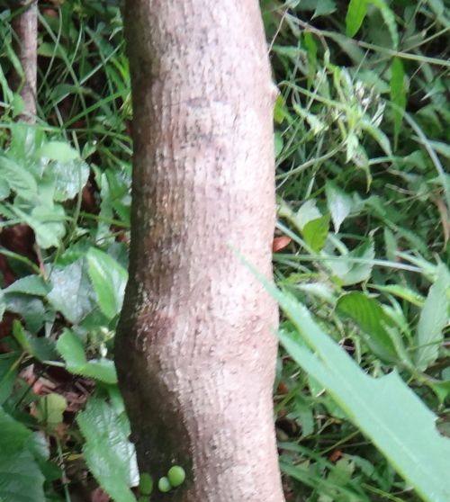 樹皮は灰色でまるい皮目があり、滑らかである。