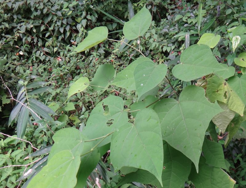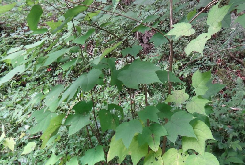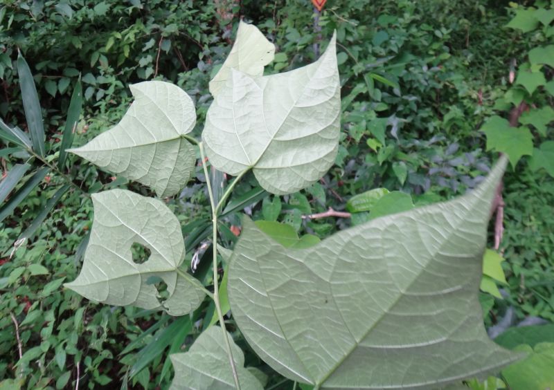 葉は掌状で3浅裂しており、ウリの葉に似ている。葉柄が長い。