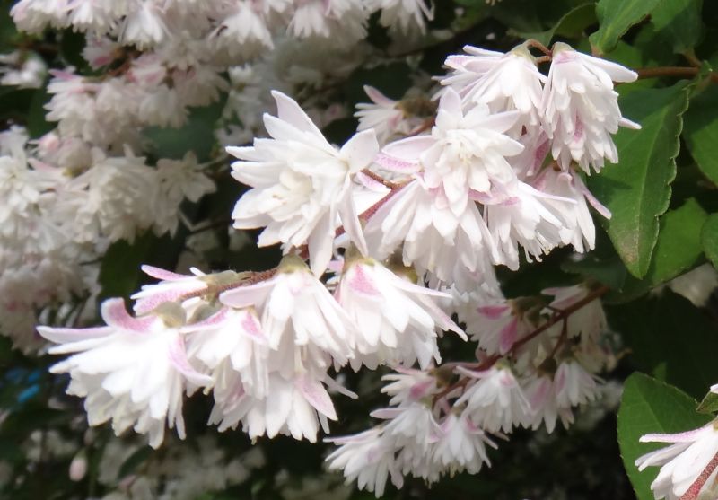 花が重弁で花弁の外側が薄紅色を帯びるサラサウツギ。(2015/6/1)