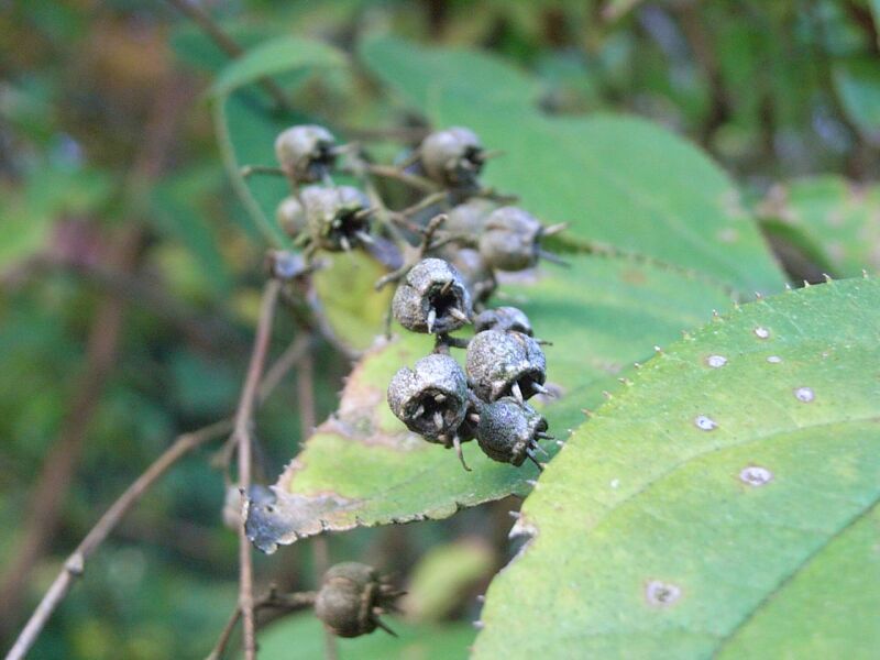果実は直径4〜6ミリのお椀形の朔果で、先に花柱が残ってついている。