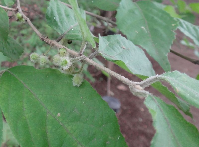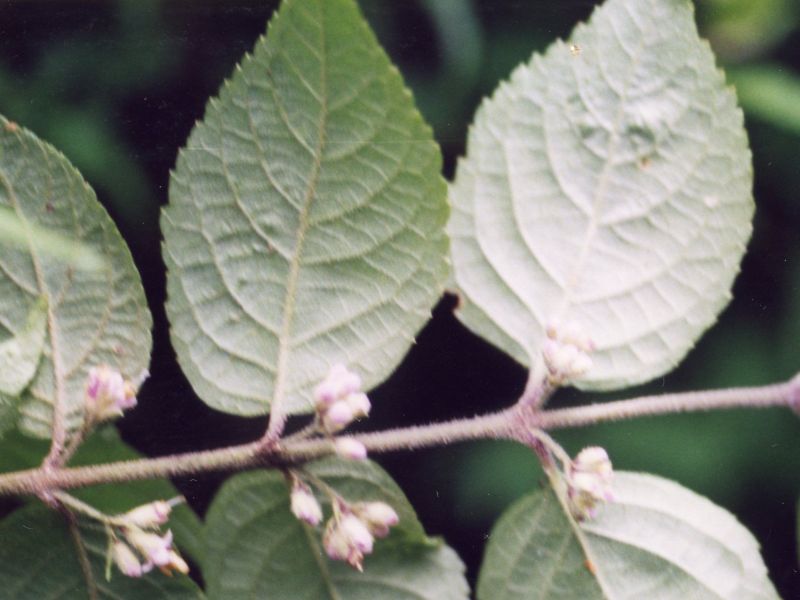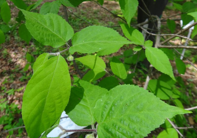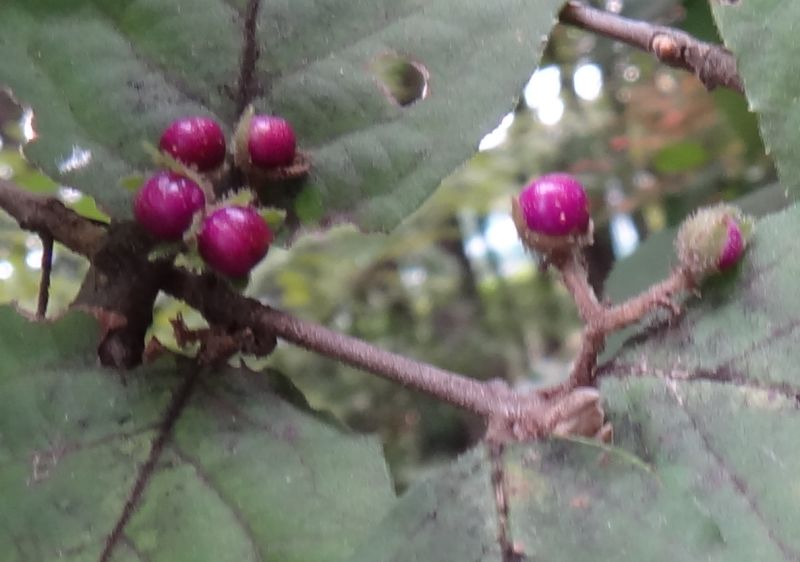 ヤブムラサキ :枝や萼に星状毛が密生し、果実の下部が萼片につつまれる。