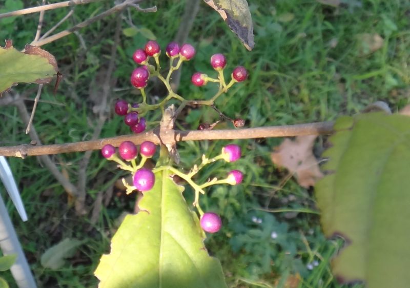 秋に直径4ミリぐらいの球形で薄紫の核果がつき、紫色に熟す。