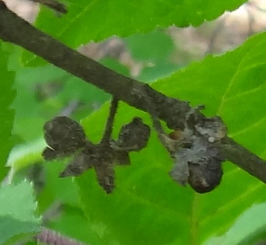 前年の果実が落ちた後に、枯れた萼が4裂して残っている。(2015/5/6)