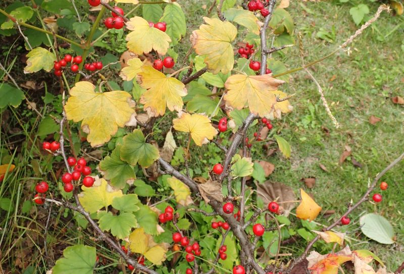 果実は直径7〜8ミリの球形の液果で、10月〜11月に赤く熟す。