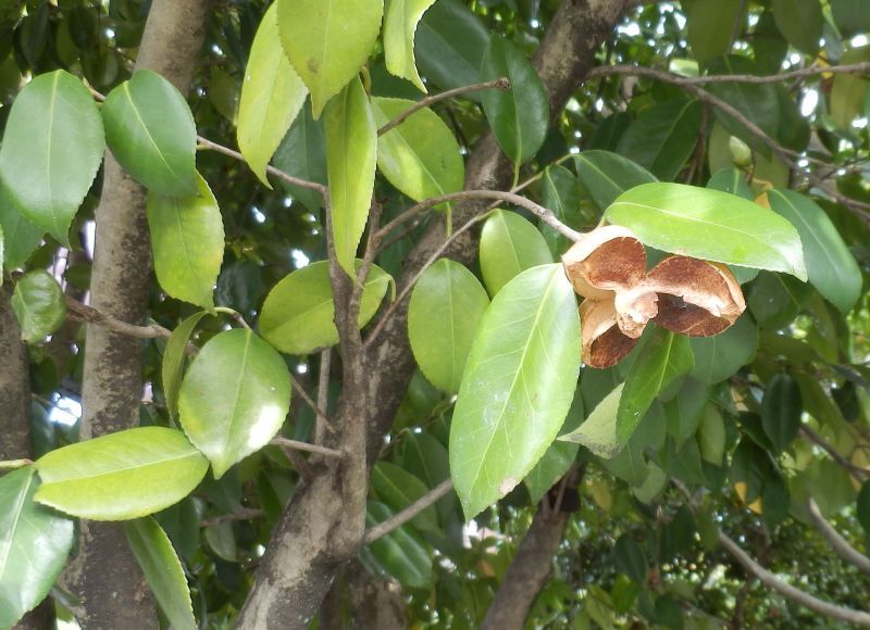 刮ハは3つに裂開し、黒茶色の殻に入った種子が数個現れる。