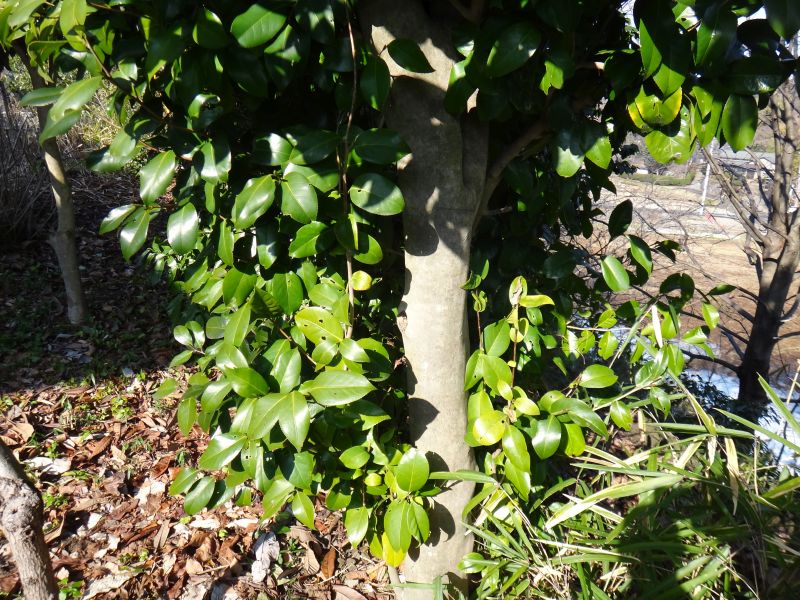 幹は灰褐色でなめらかであり、若枝は淡褐色で無毛である。