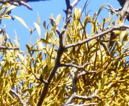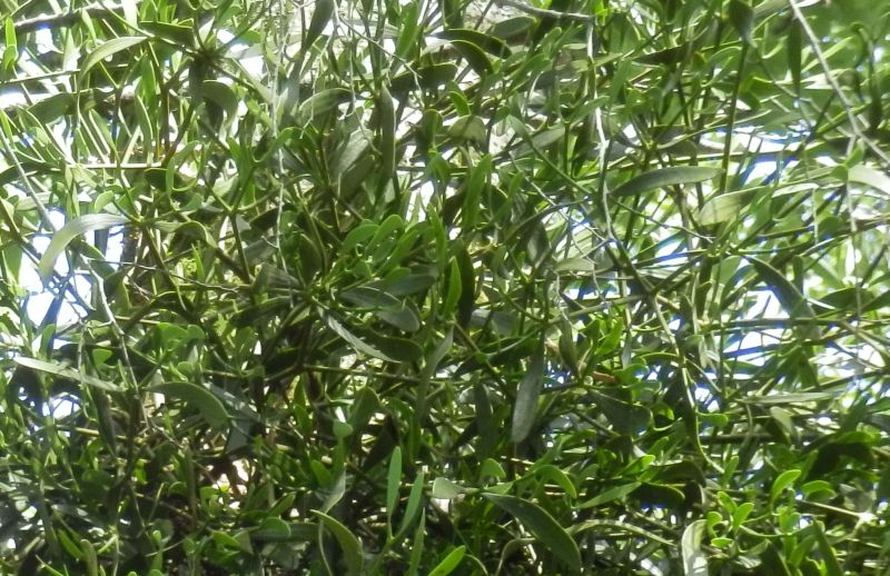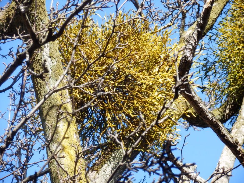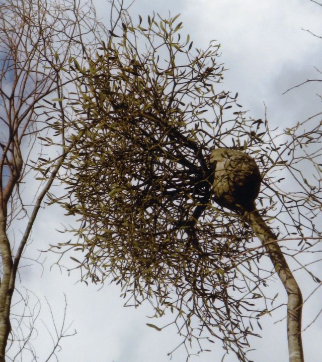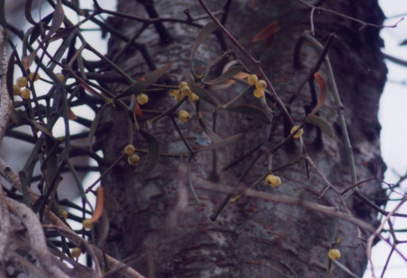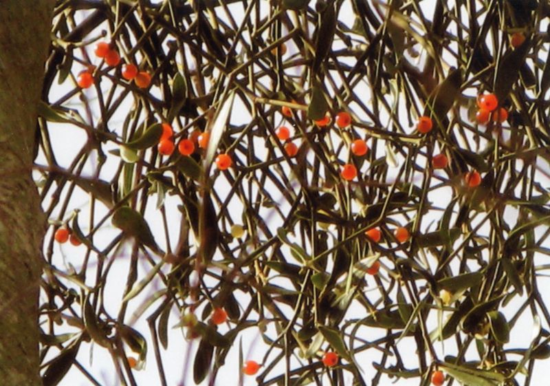 実が赤みを帯びるアカミヤドリギ。Photo by H. O. (2010/1/22)