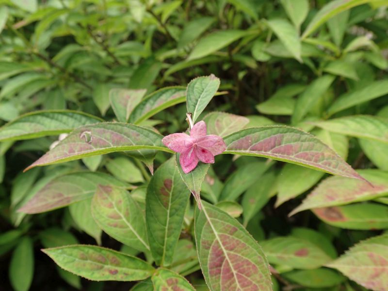 花が赤みを帯びる品種は、ベニヤマアジサイと呼ばれる。