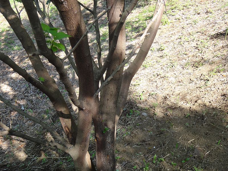 若い幹。樹皮には皮目がある。