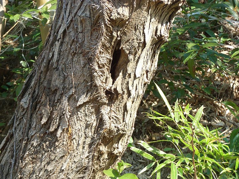 老木の幹は褐色で縦の筋があり、薄くはがれる。