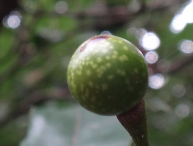 未熟の液果は緑色で、不明瞭な白い斑紋がある。