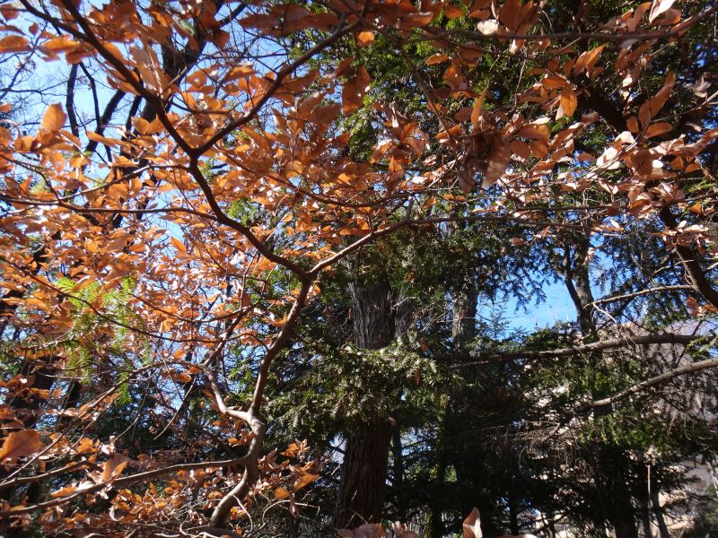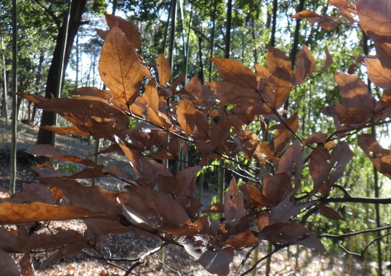 秋に黄葉するがすぐには落ちないで、枯葉で冬を過ごし、