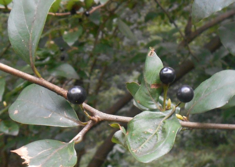 直径約7ミリの球形の液果がつき、秋に黒熟する。