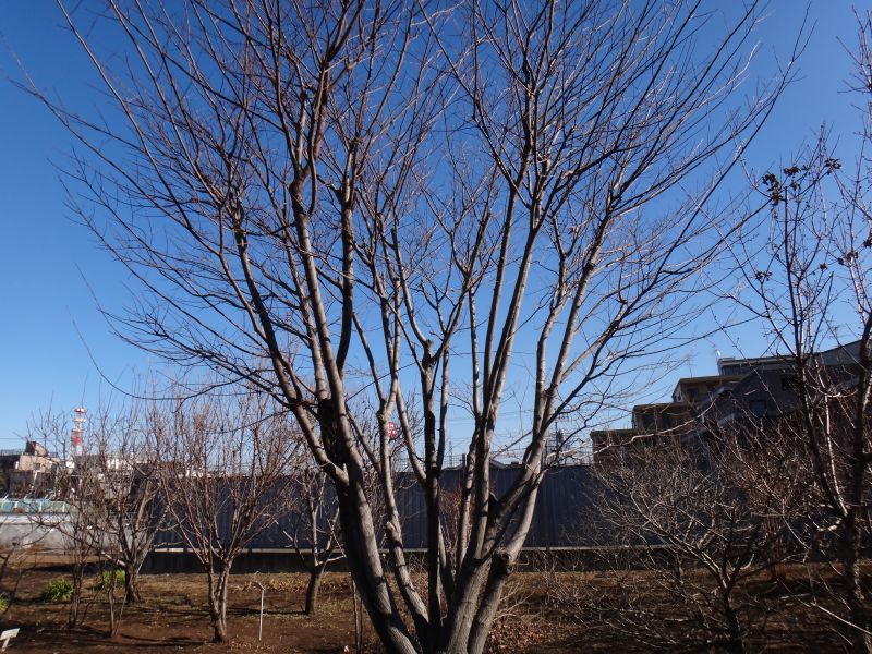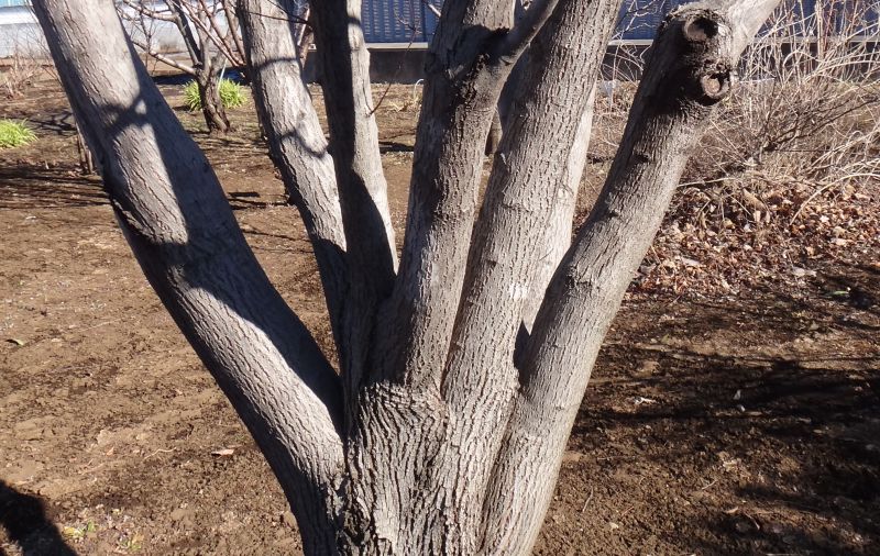 幹は灰褐色〜灰黒色で、不規則な縦溝ができる。 (2018/1/10)