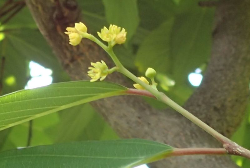 初夏に枝先とその近くの葉腋から集散花序を出して、 直径3ミリぐらいの黄色い小さい花をつける。 花冠は5裂し、萼片は3角形である。