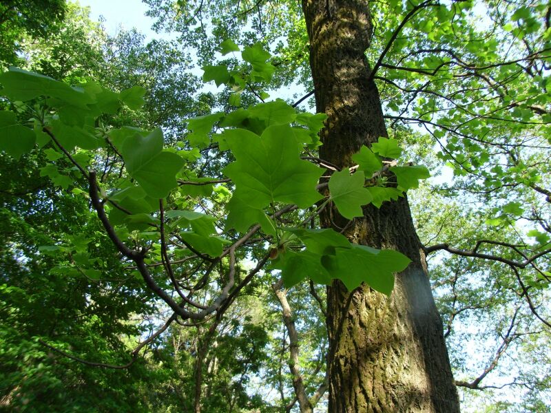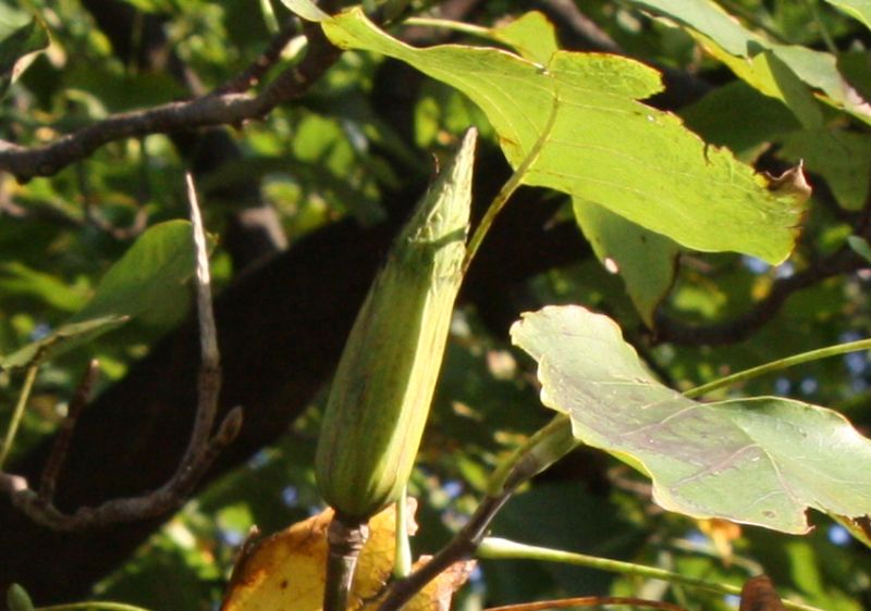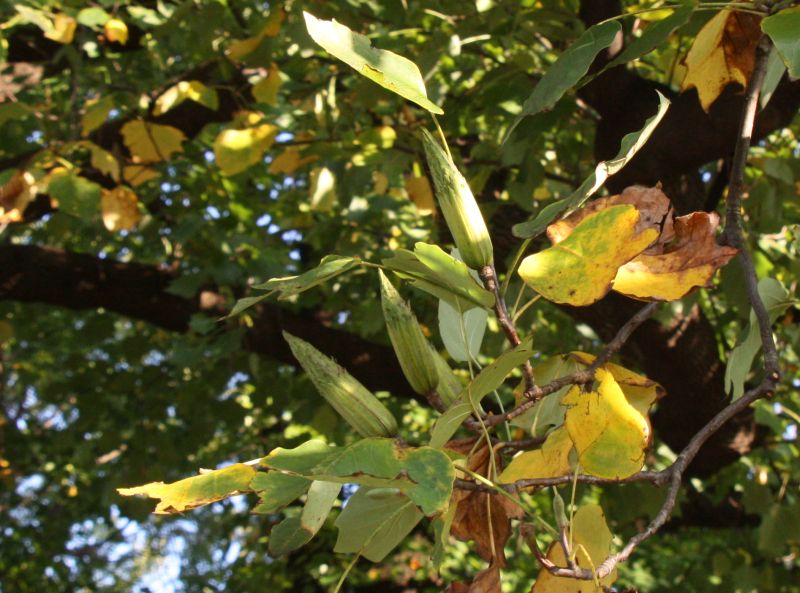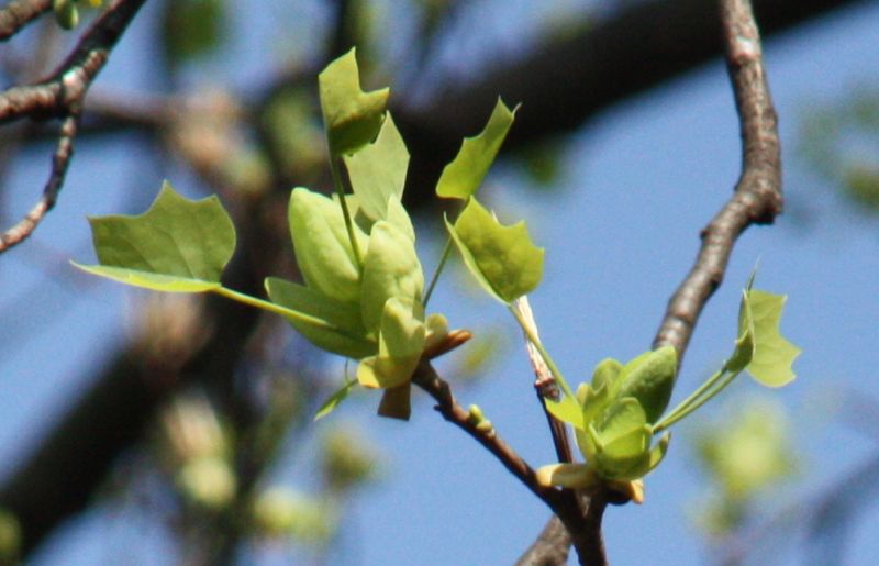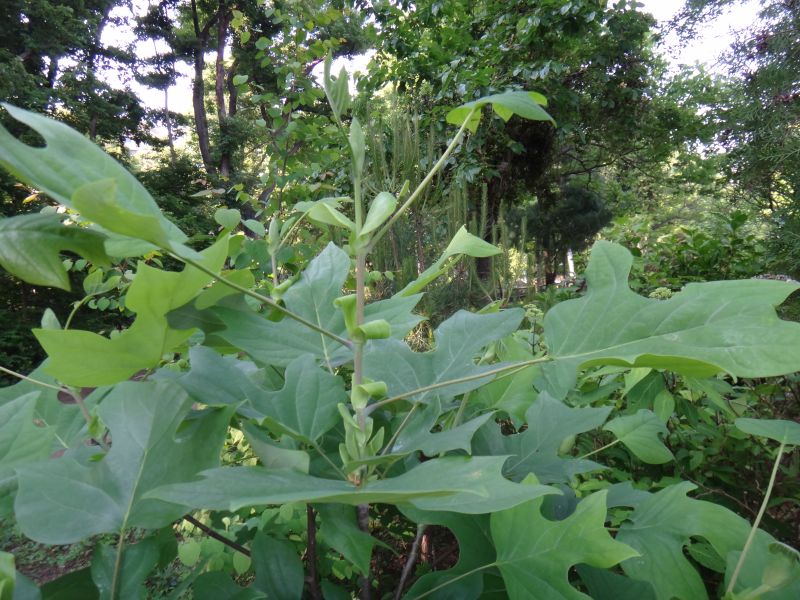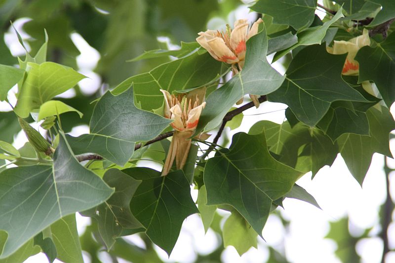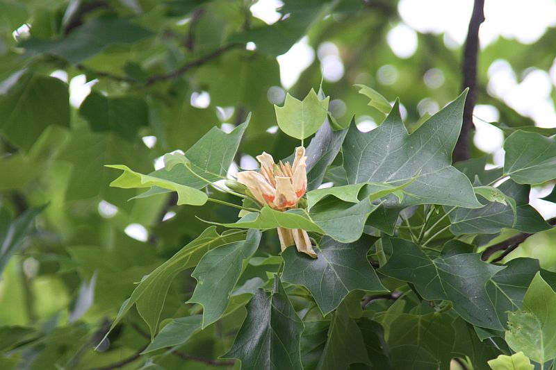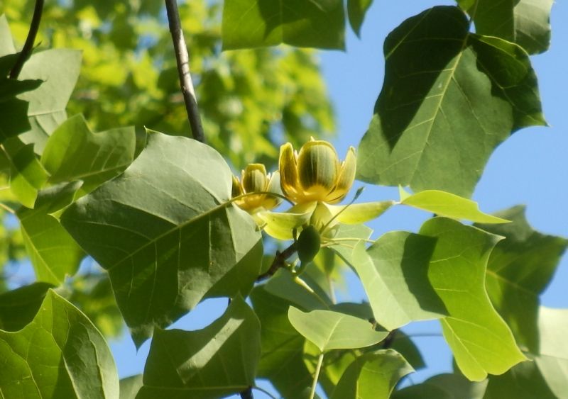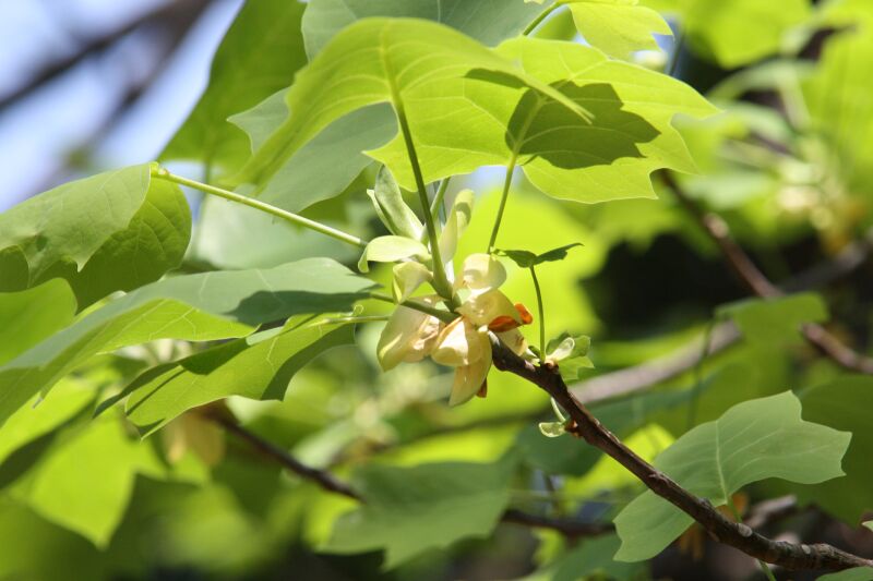 初夏に枝先にチューリップに似た形の淡い黄緑色の花を1個ずつつける。