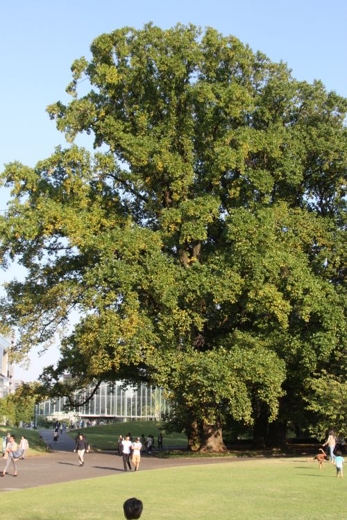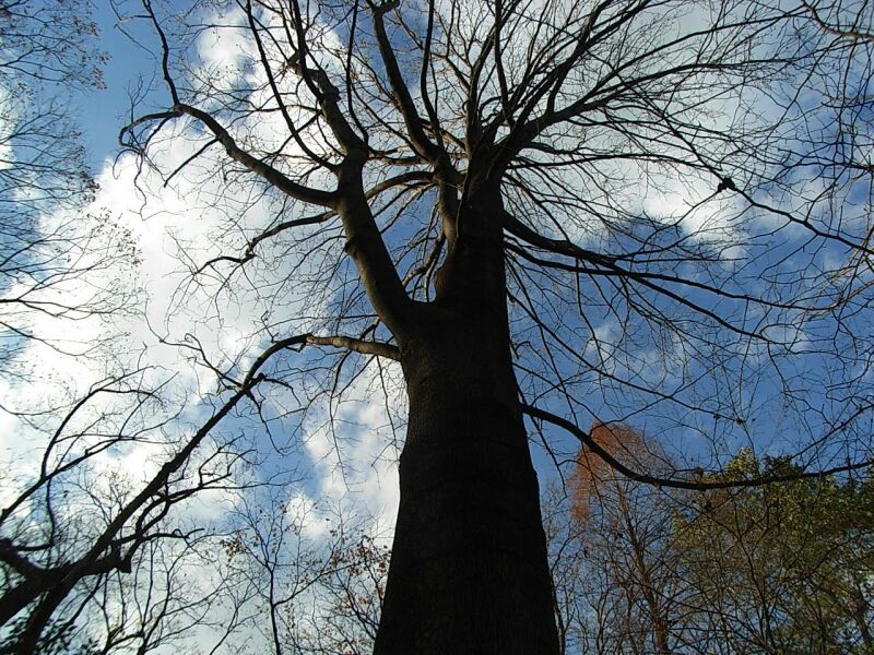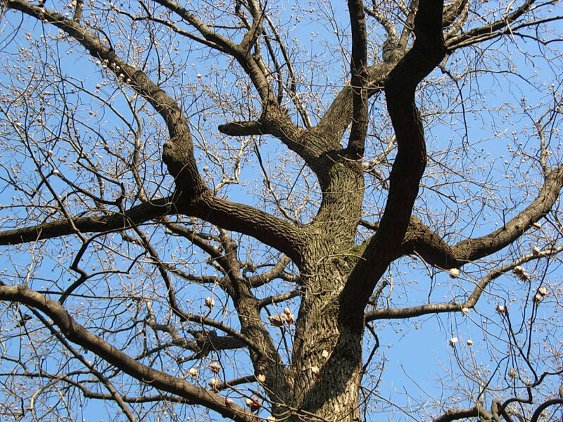 樹皮は灰褐色で、幹には深い裂け目が編み目のようにできる。
