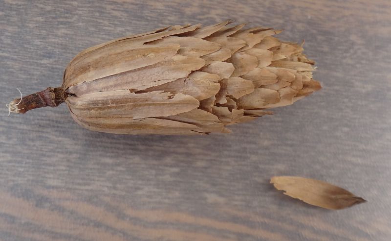 果実は、よく見ると、翼果が松笠状に集まった集合果である。(2015/10/12)