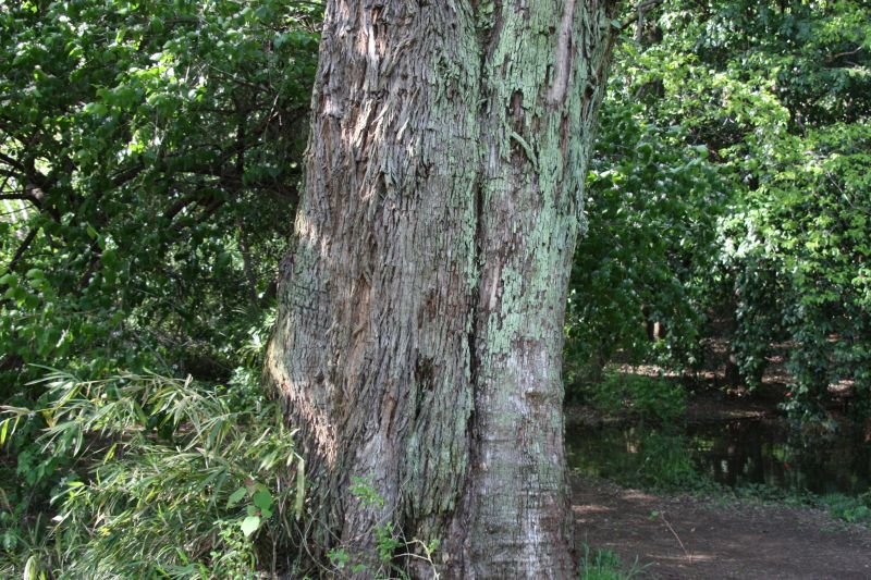 樹皮は灰色でなめらかであり、老樹では縦割れしてはげる。