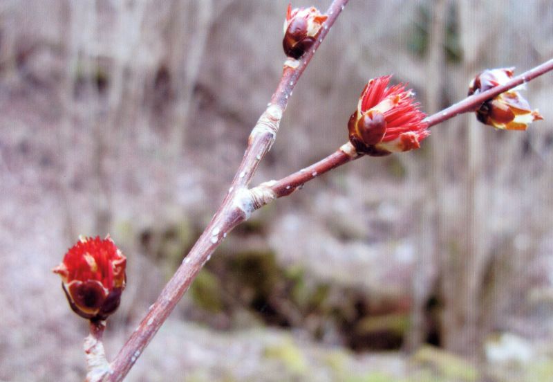 冬の間から枝先に蕾をつけ、春に花を開く。
