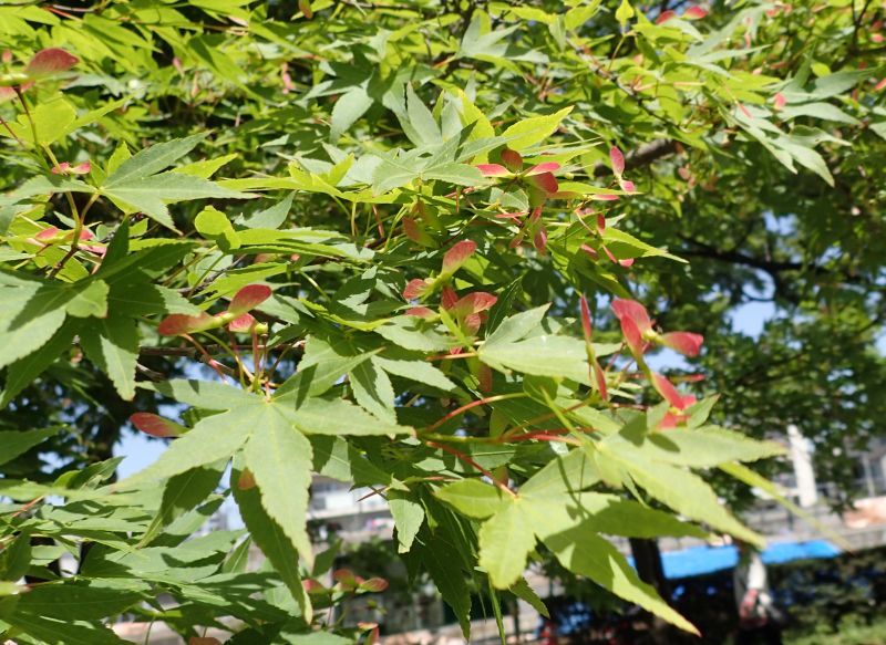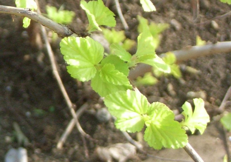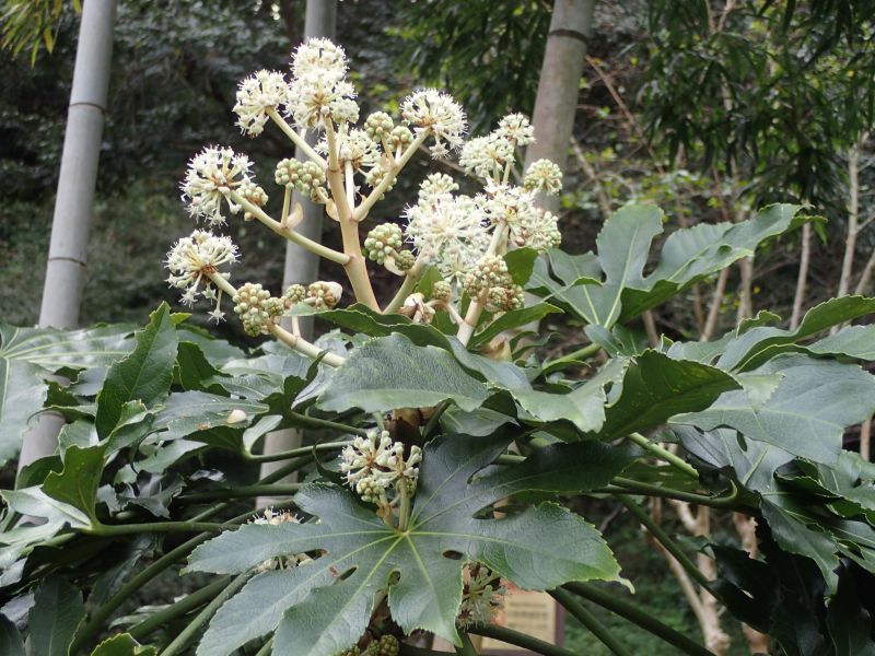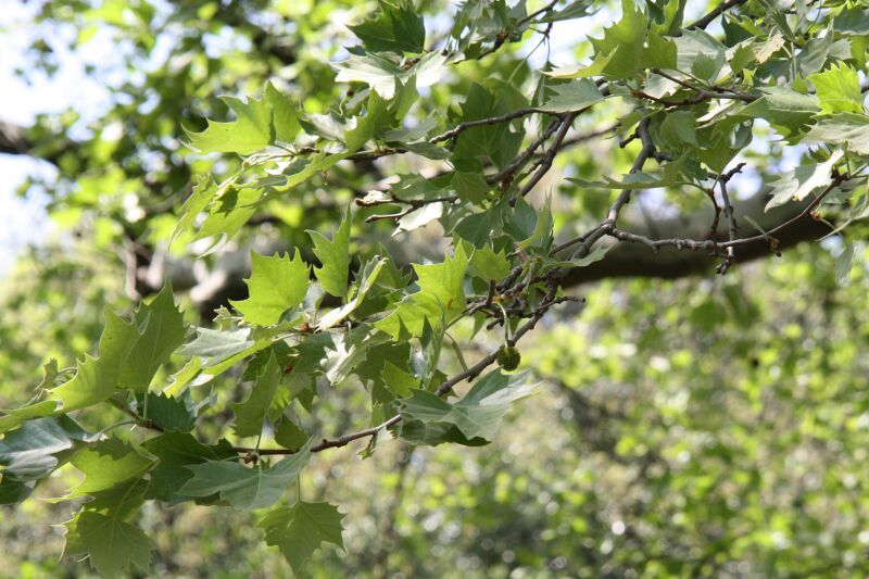 葉は3〜5裂して掌状となり、果実は球形の集合果となる。