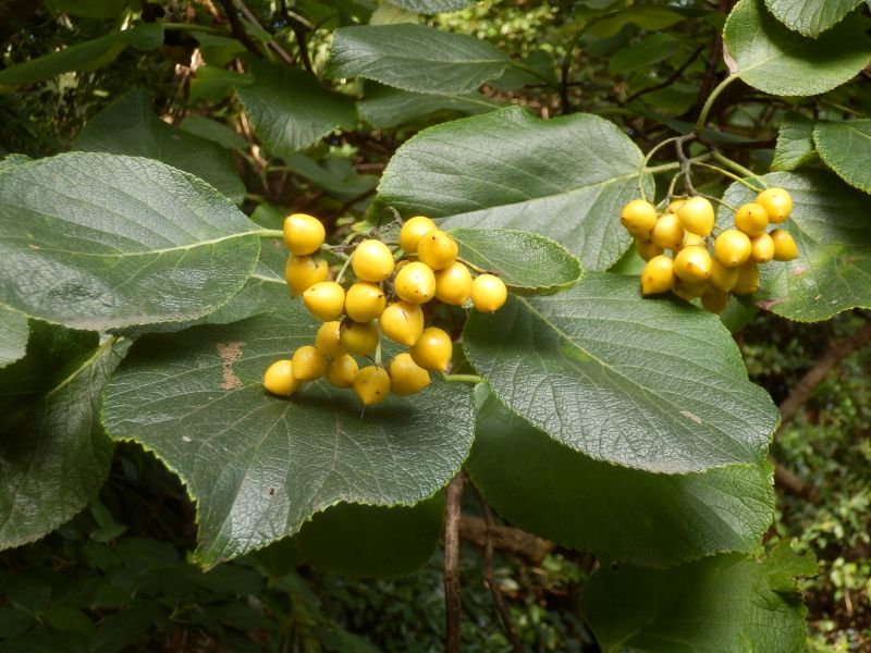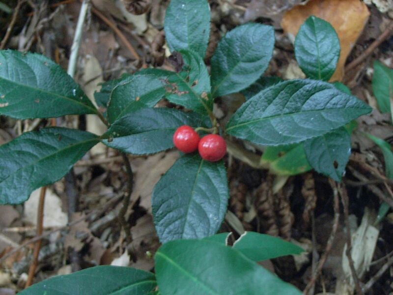 葉は有柄の単葉で鋸歯があり、液果をつける。
