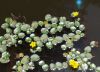 水面に浮く広卵形の小さい水草(単子葉植物)。