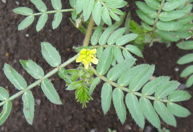 葉が3出し豆果をつける。
