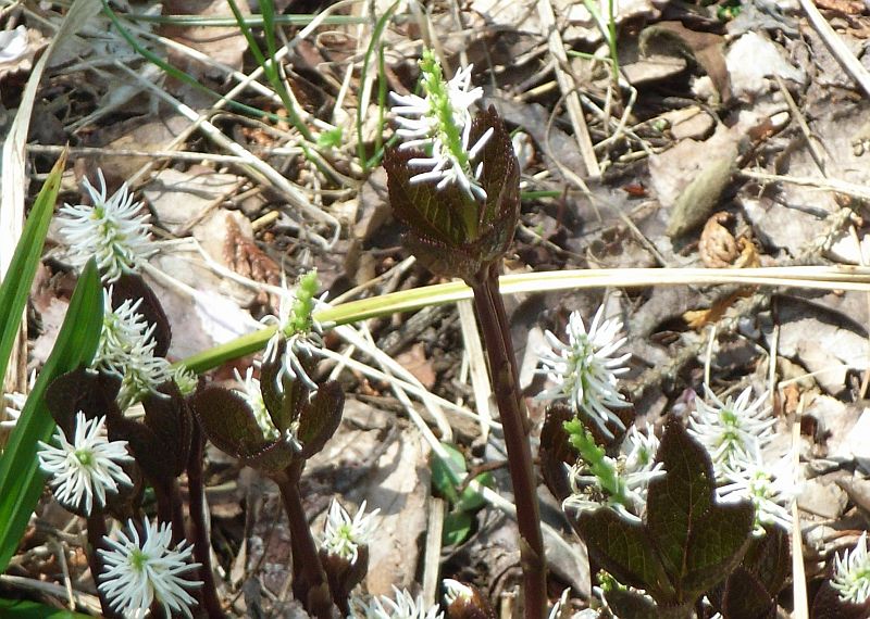 穂状の花序をつけ、朔果が熟すと上部から2裂する。
