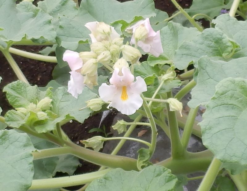 漏斗形の花をつけるつる植物で蕾は螺旋状にねじれる。