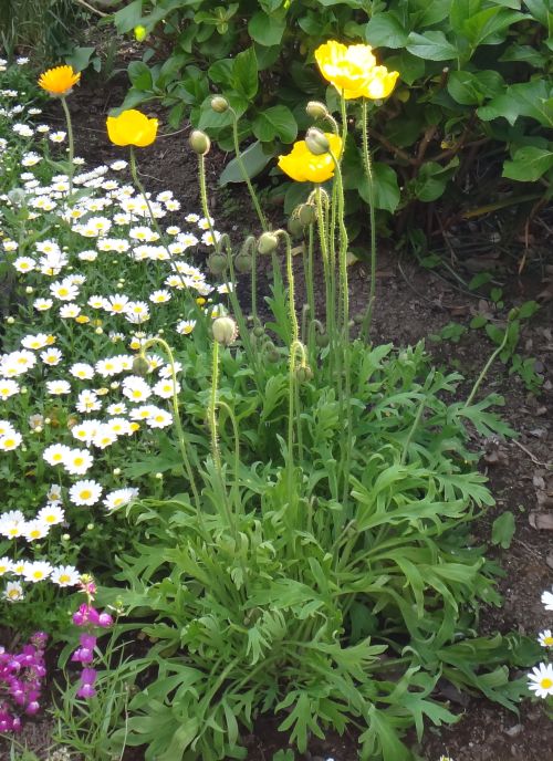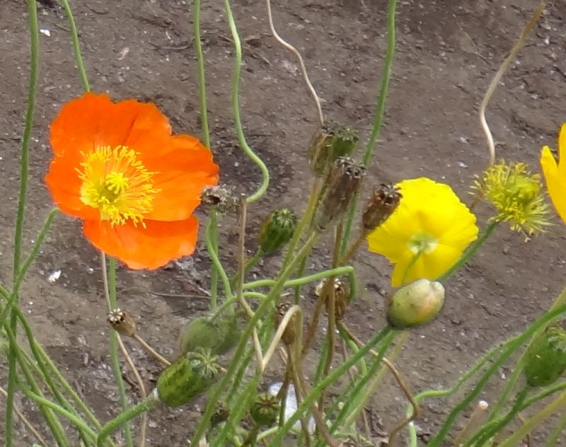 アイスランド・ポピー:葉は無毛の白緑色で光沢があり、茎は枝分かれしない。