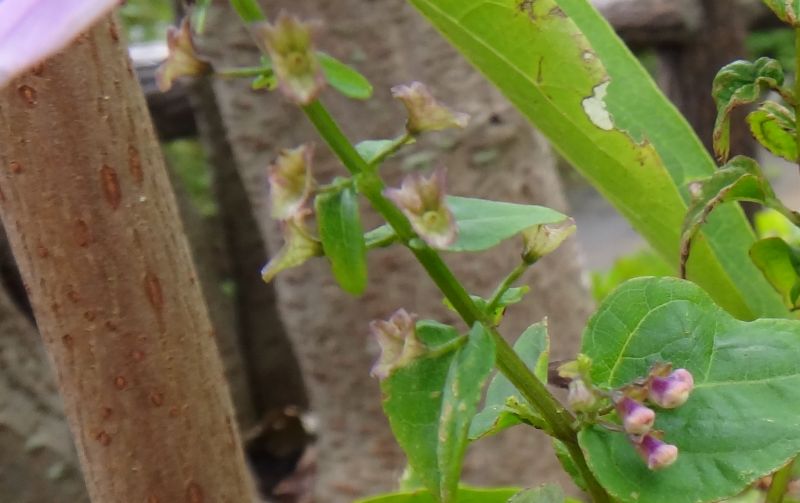 花の上方にあるのは蕾。花冠の裂片が畳まれている。