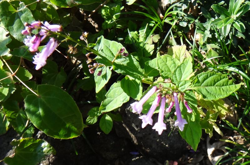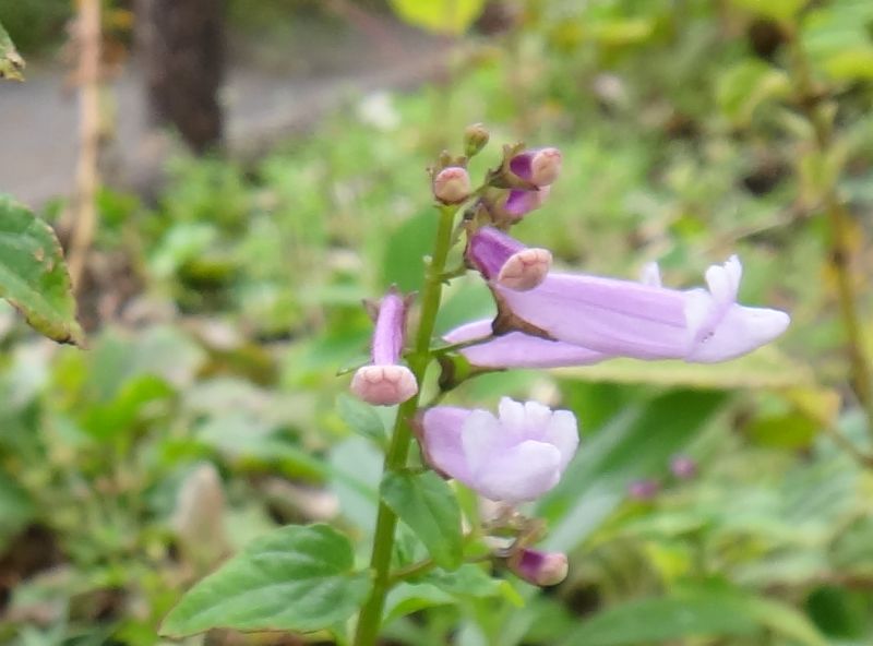 花冠が浅く4裂してまくれあがる。下唇はボートの舳先状。萼の裂片はあまりとがらない。(2016/10/20)