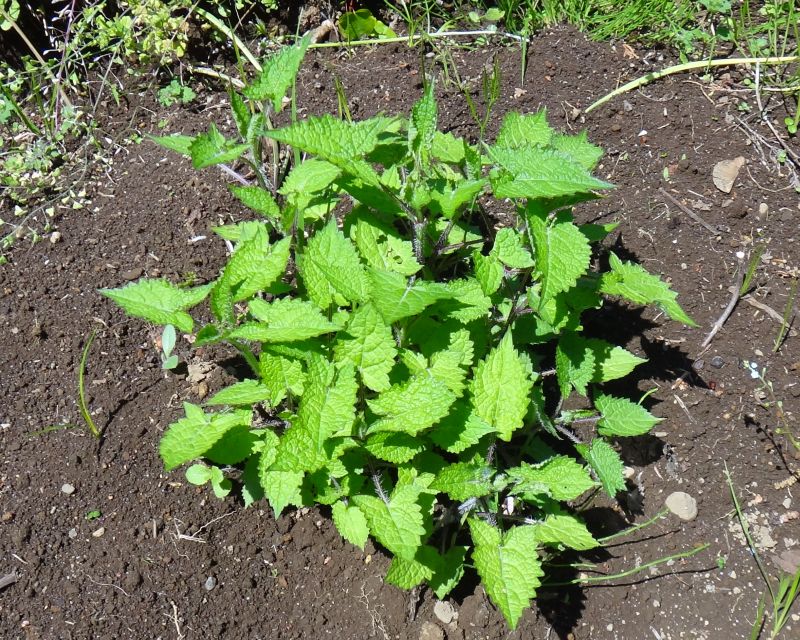 葉は三角状矛形で、葉柄が長くて対生し、葉柄に白毛がある。(2016/4/29)