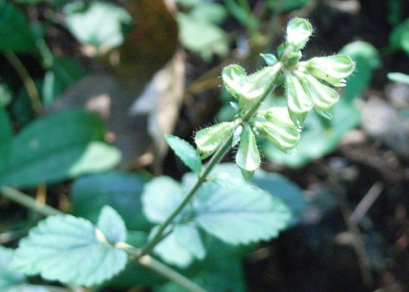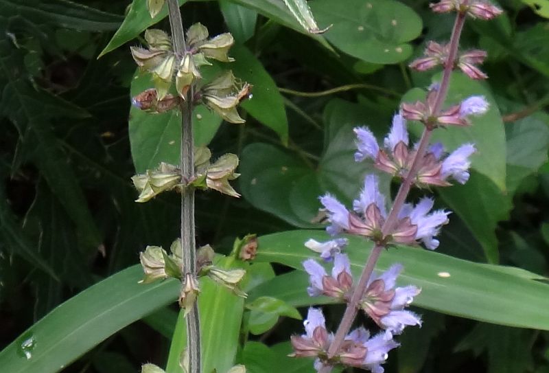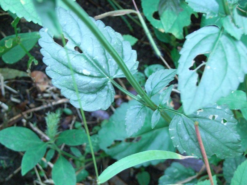 ヤマハッカ :単葉、花柄明瞭、上唇そり返り、下唇突出し、秋に咲く。