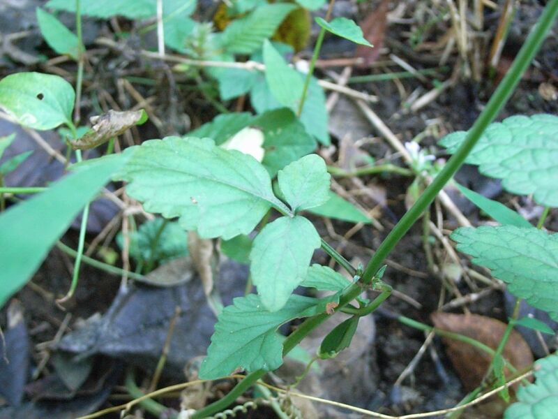 鋸歯があり、下部の葉には長い柄がある。