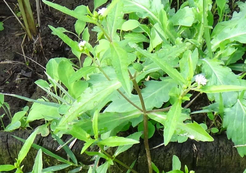 にくらべ、頭花がやや小さく、葉が細長くて基部が細く、
