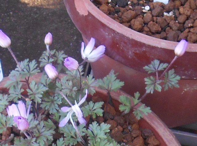 3出複葉が叢生し、小葉はさらに中裂〜深裂する。葉柄は細い。
